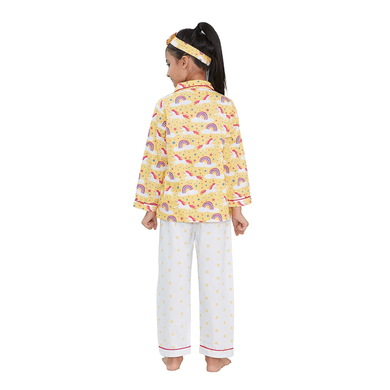 The package includes 1 piece shirt with front button closure and 1 piece pyjama with the softest drawstring elastic making sure your child sleeps comfortably throughout the night without worrying about rashes or discomfort.