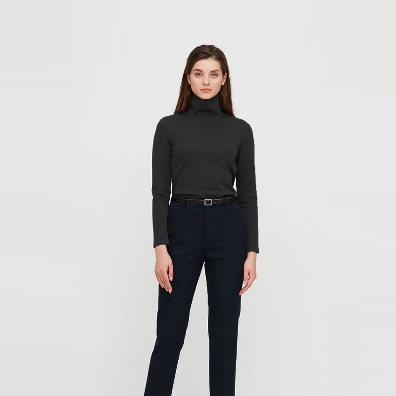 Women Black Solid Turtle Neck T-shirt