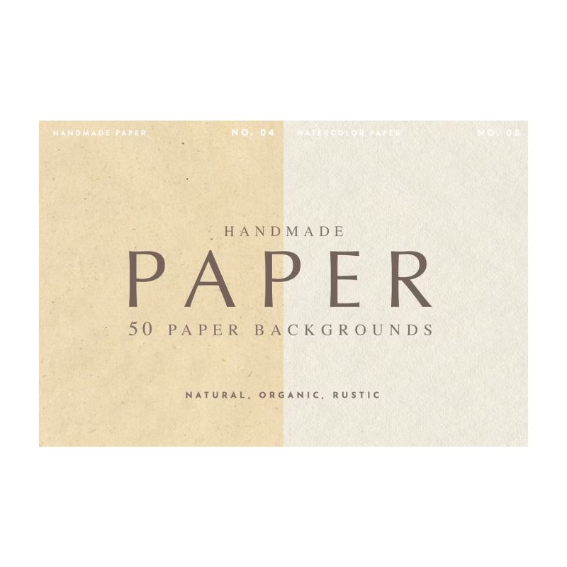 The paper texture surfaces range from soft to grainy to rough or smooth with speckles and particles in most of the papers giving a great organic feel. The papers come in a range of natural colors including off-white, tan, gray, and blue.