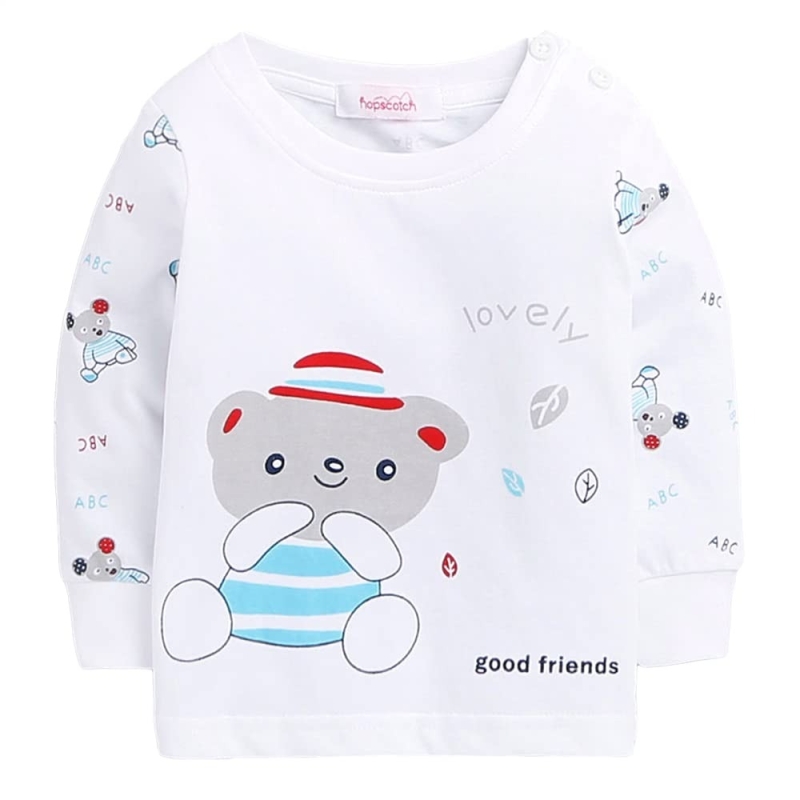 Hopscotch Baby Boys Cotton-Blend Animal Print Top and Pajama Set in White Color