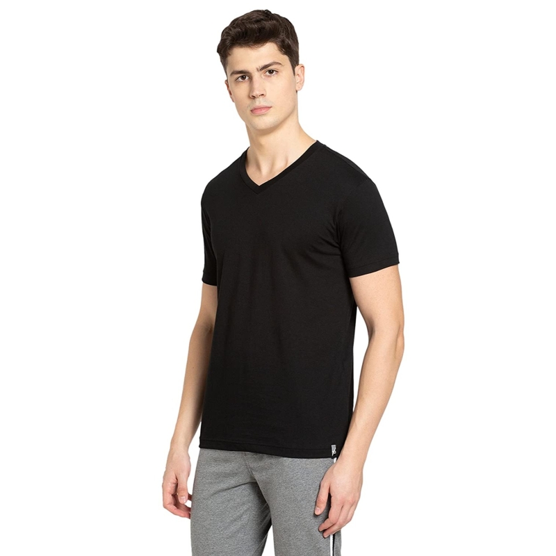 Men's Super Combed Cotton Rich Solid V Neck Half Sleeve T-Shirt