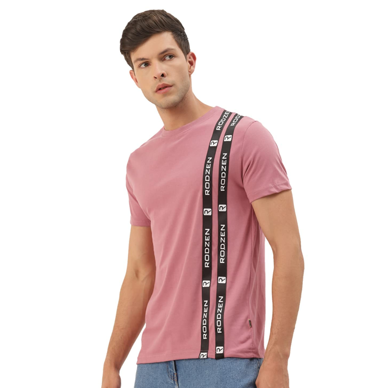 RodZen Men's Cotton Half Sleeve Regular Fit Striped T-Shirt